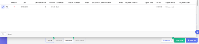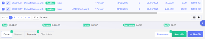 In this section, you will have the ability to manage all aspects related to your bookings. This includes creating and organizing files, adjusting views, overseeing booked services, processing payments, and viewing invoices and credit notes.