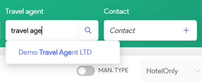 Type the identifier directly into the Travel Agent field to select the desired Travel Agent. If there is only one matching entry, the system will automatically select that Travel Agent for you.