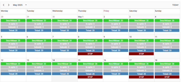 The calendar uses a color-coded system to provide a clear visual representation of allotment status for each day. Each color corresponds to a specific status, helping you quickly assess availability at a glance.