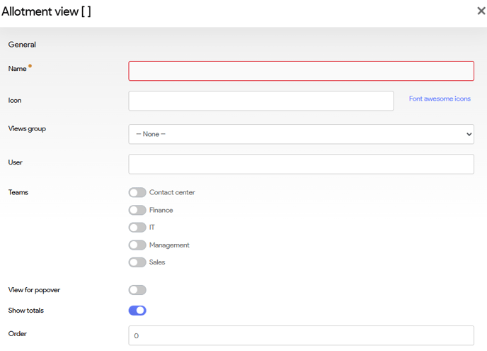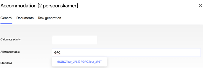 Start typing in the Allotment table field en select the desired allotment table and click save.