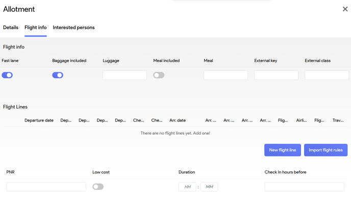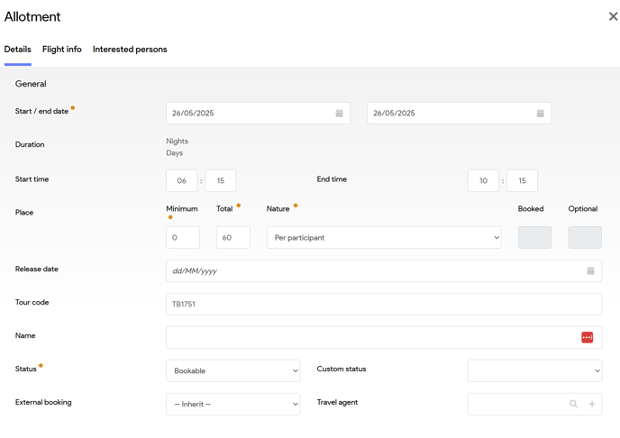 | Travel agent | Optionally, you can assign the allotment to a specific agent code. |