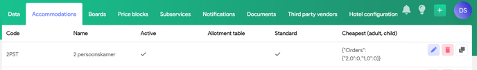 Here you can Edit the accommodation , to assign your allotment table to the corresponding accommodation code. In this example will assign the allotment table to 2PST.