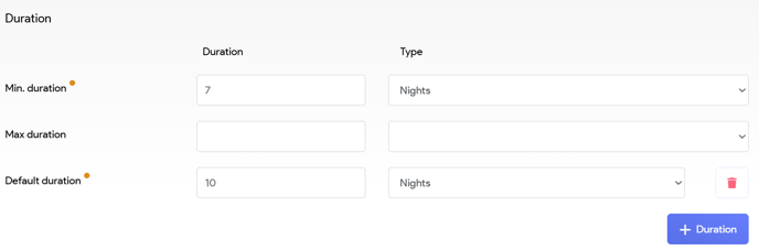 - Minimum stay: is taken over from the season setting, if you modify the value here, it will also be updated on the corresponding season