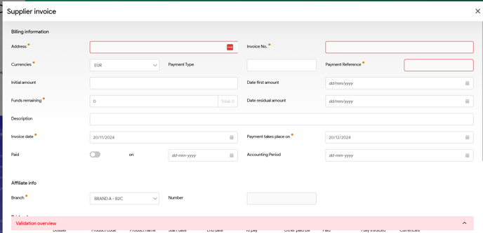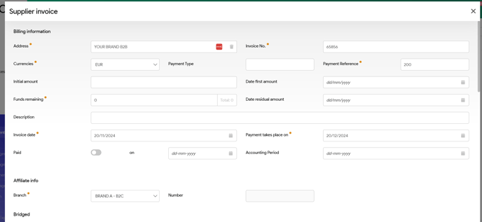 Input your supplier and amount etc and system will populate all invoices related to this address