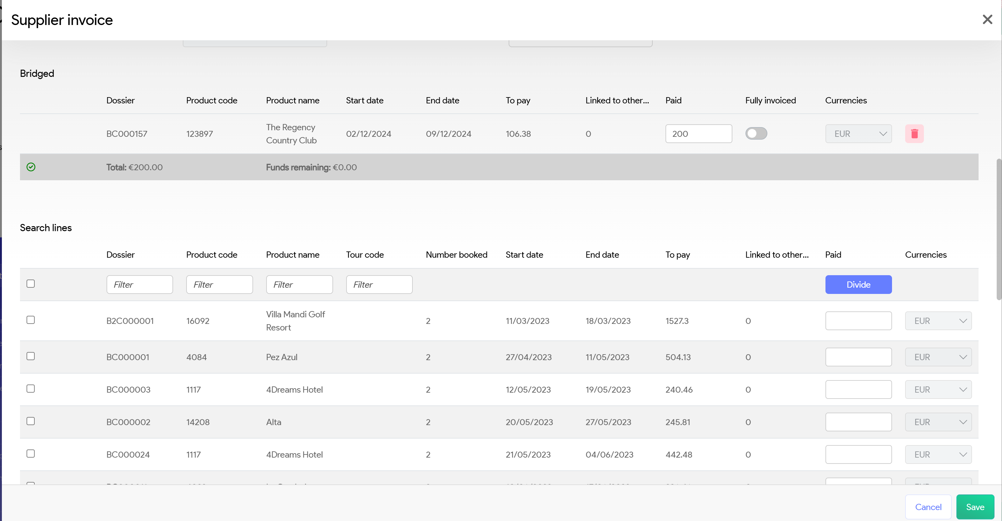 Input invoice against the correct booking