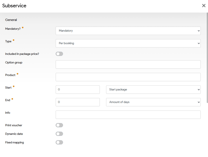 A subservice component can be any type of product e.g. flight, hotel, transfer, excursion, extra service, ... This article will guide you through the process of adding and customizing your subservices effectively.