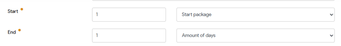 - Start: You will set the offset to 1 and type to Start package (Default)