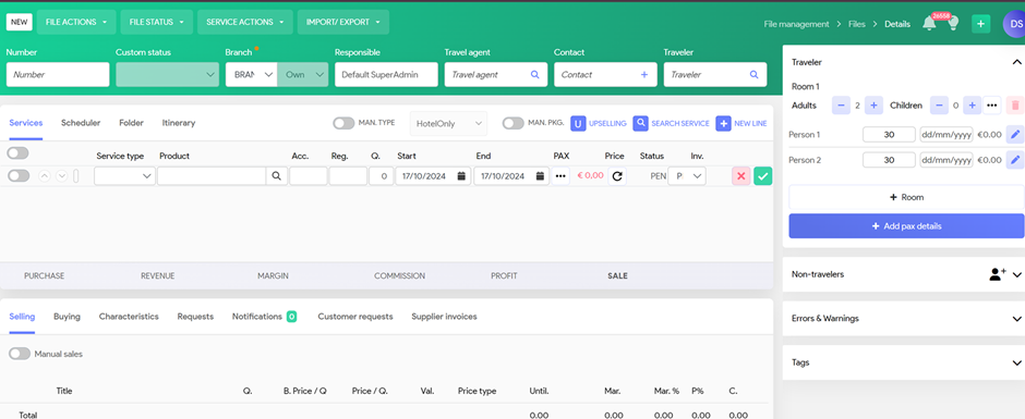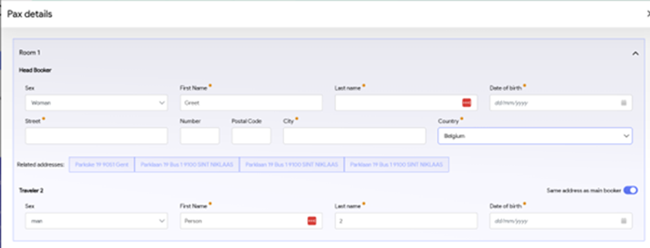 By inputting the first name, system will check, if there is already a customer with same address and populate ‘suggestions’ of travel party, based on previous bookings.