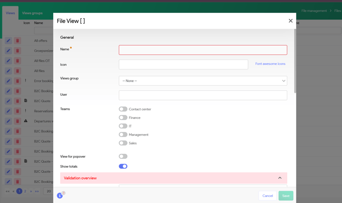 | Teams | Restrict the view so only a specific team or teams can see the view. |