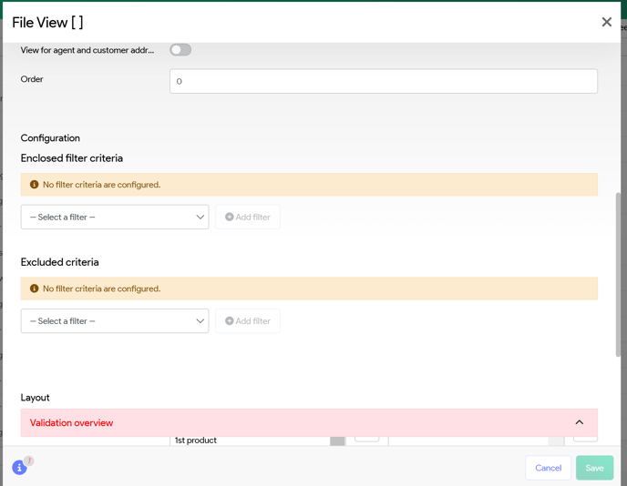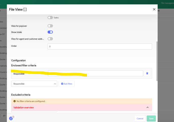 Here you will configure what data needs to be selected in your view. This will be done by setting up the specific criteria. Depending on the item your working in - whether it's an address view, file view,... these filters will be different.