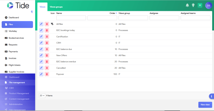 In this tutorial, we will focus on the file management views; however, the same principles apply to all other views within Tide, including payments, addresses, and invoices.