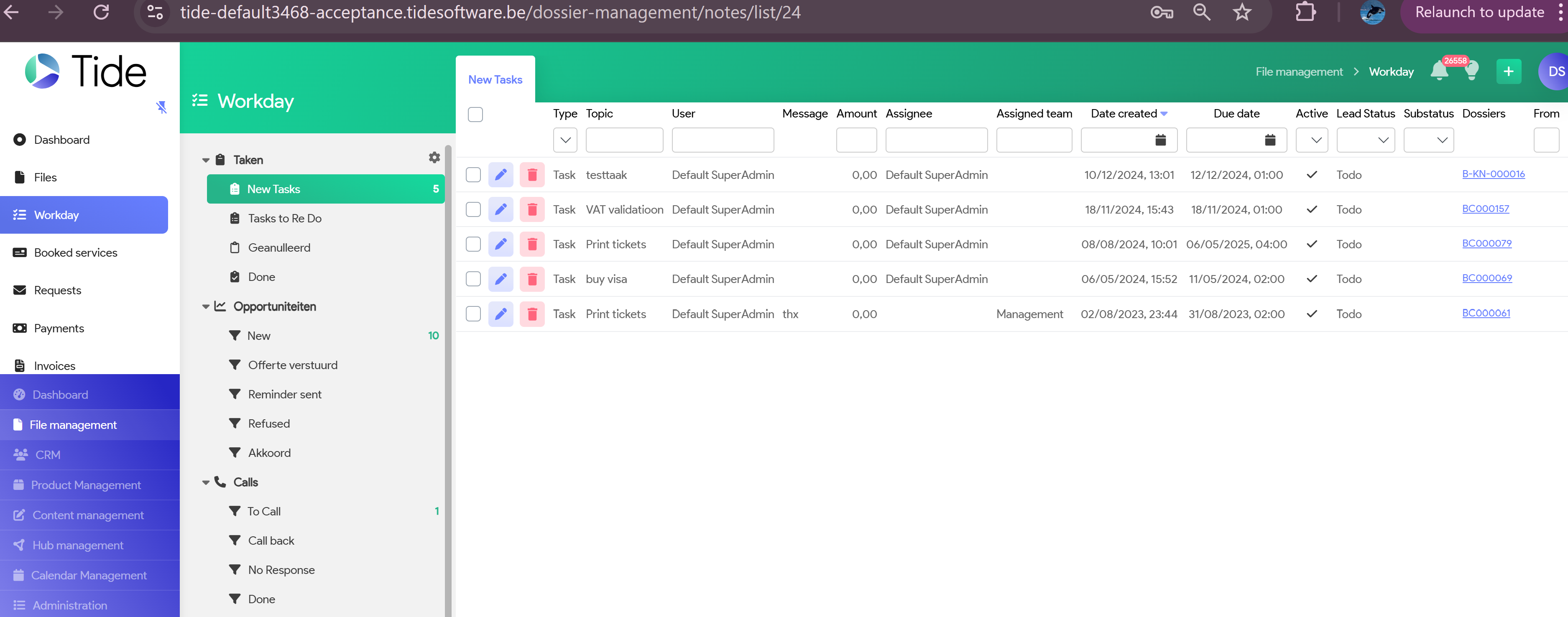 Here, you will find all open Opportunities / tasks and to whom assigned