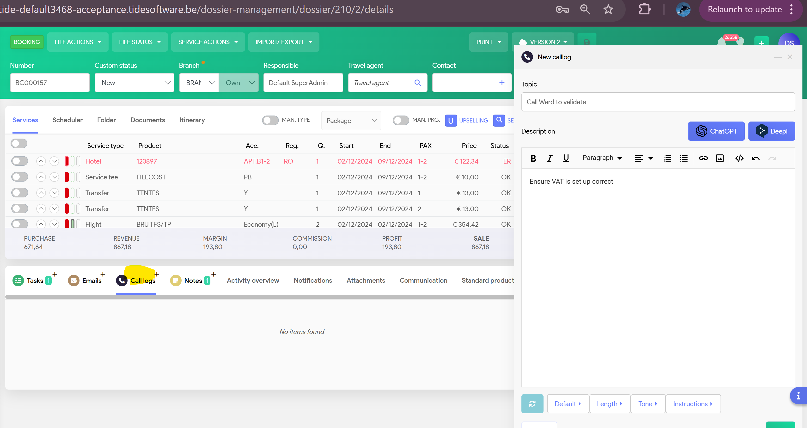 You will see the detail in the Call logs, for more details, click on the pencil on the right side of the line