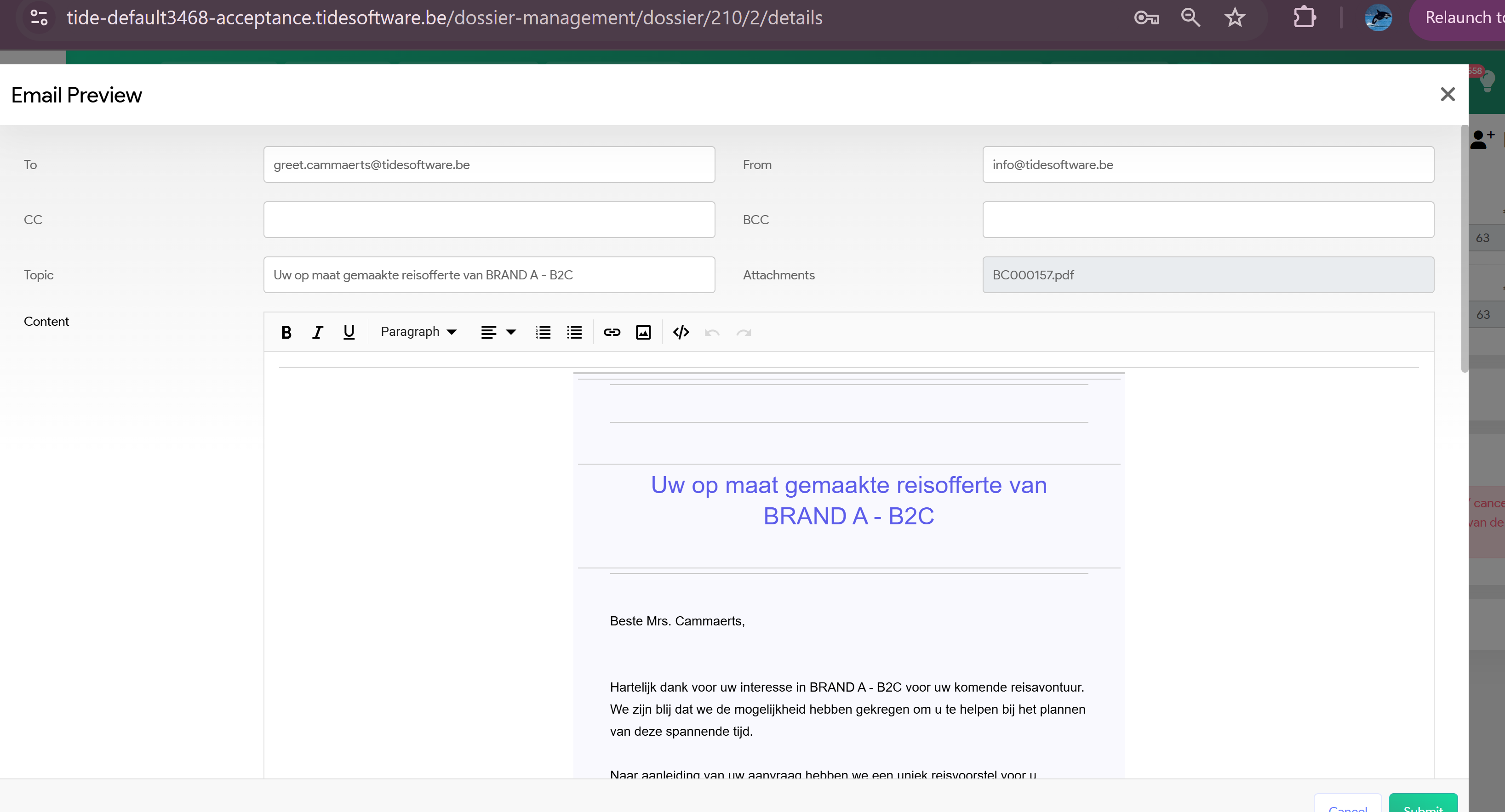 How to send a mail from your booking