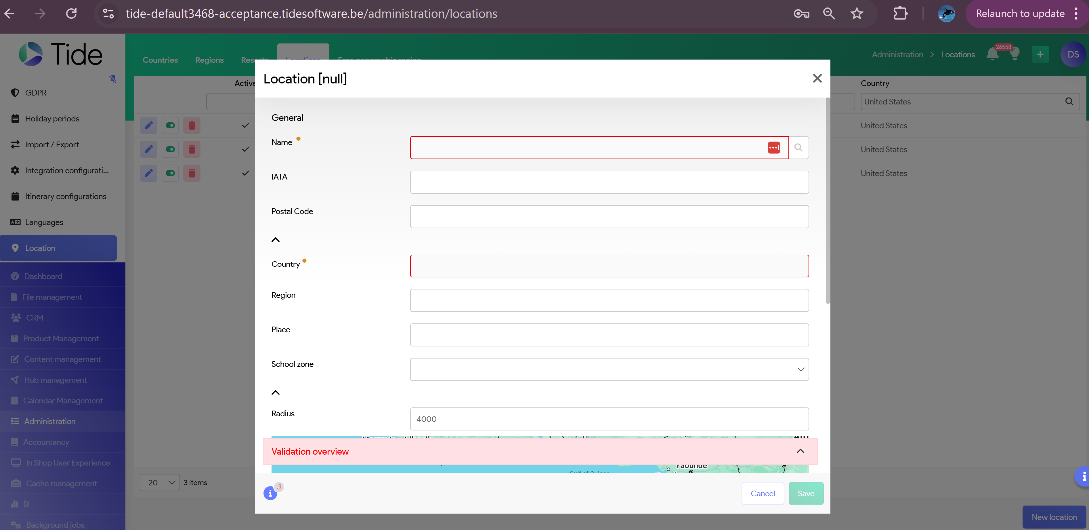 How to set up a Location or region