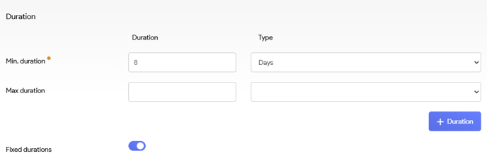 You can chose a fixed duration. In this case the user only has to select the start date and the end date will automatically be calculated.