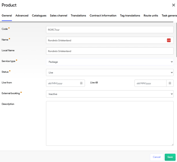 As mentioned in How to Create a Product, always use "inactive" as a value for External bookings. This will be the default value.