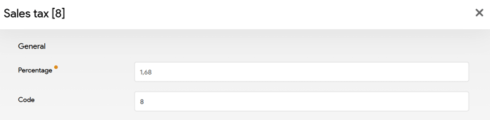 | Percentage | Here you can define the 'VAT on margin' percentage e.g. 1,68 |
