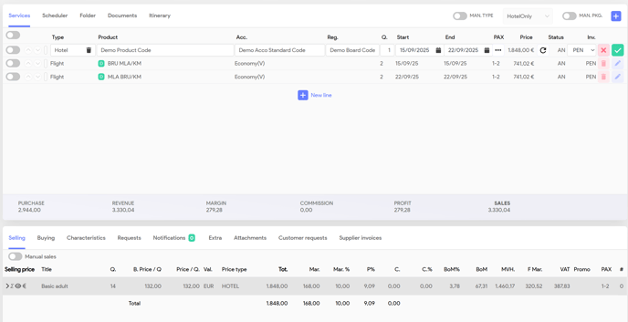 After adding flight lines (see image below) the file type is automatically set to Package, thus we expect a 18% notional margin, which results in a 3,78 % VAT on Margin.