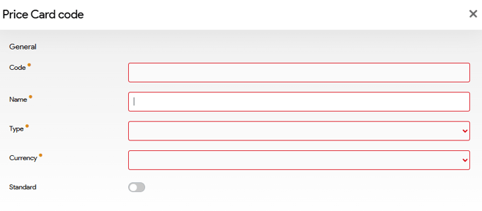 - Click on the button "New price card code" in the bottom right corner