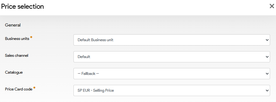 - Click on the button "New price selection" in the bottom right corner