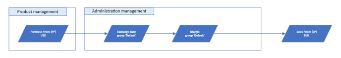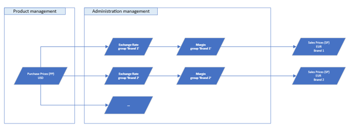 Calculation flows: Logic that transforms purchase prices into sales prices using exchange rates and margin rules.