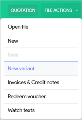 Once a quotation has been created, go to File Actions and select New Variant in the menu.