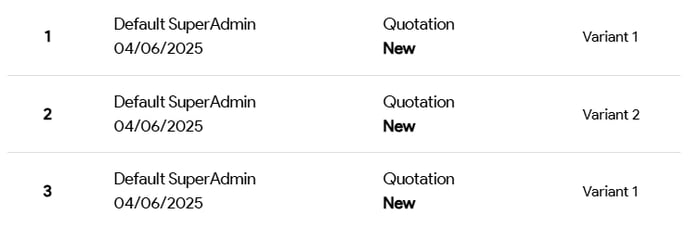 Please note that selecting the New Variant option generates a new variant of the quotation; however, these changes will only be saved once you click the Save button. If you do not save, any modifications made will be lost.